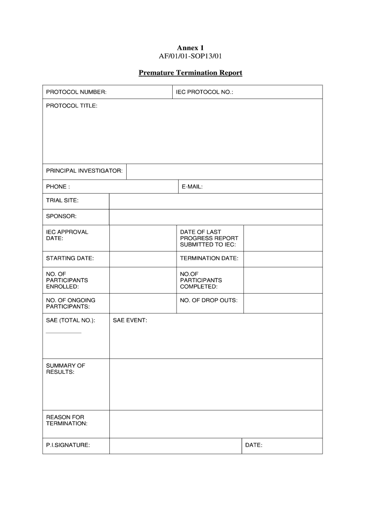 Get the free Premature btermination reportb - iecindia