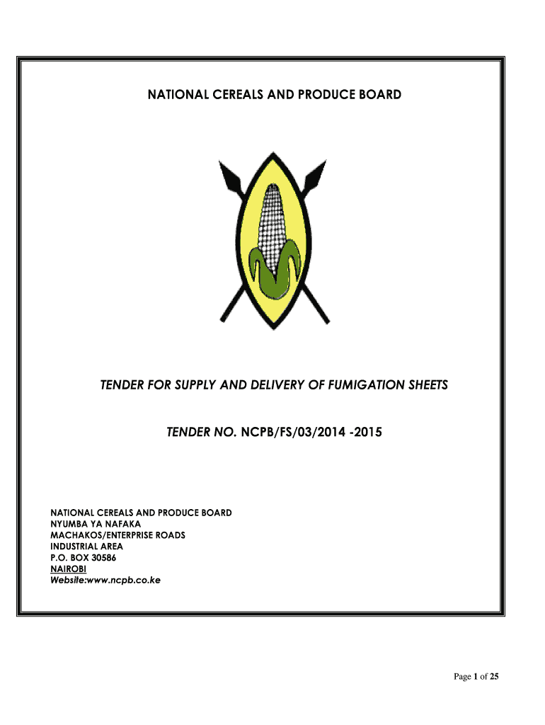 Get the free NATIONAL CEREALS AND PRODUCE BOARD TENDER FOR SUPPLY AND DELIVERY OF FUMIGATION SHEE...