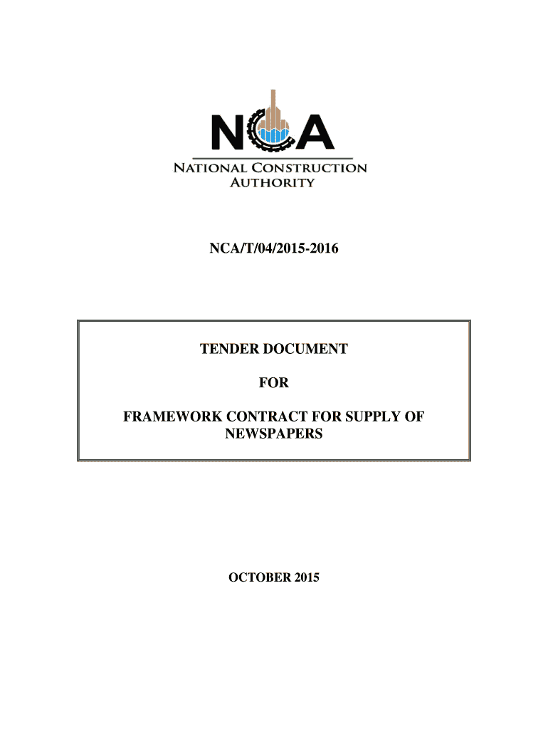 Get the free NCA/T/04/20152016 TENDER DOCUMENT FOR FRAMEWORK CONTRACT FOR SUPPLY OF NEWSPAPERS OC...