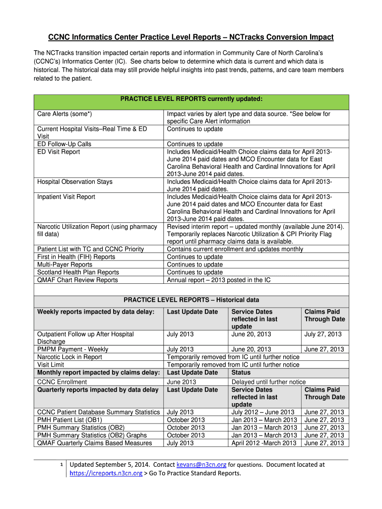 Get the free CCNC Informatics Center Practice Level Reports NCTracks Conversion Impact