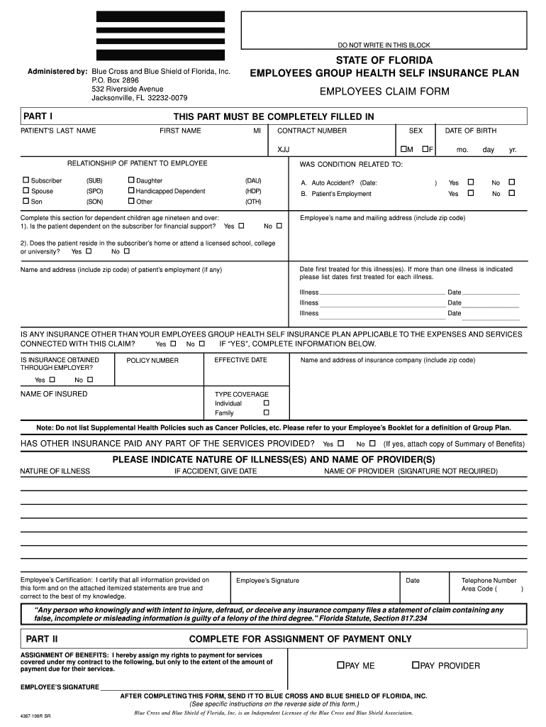 EMPLOYEES CLAIM FORM .... signing the form, send it (together with the itemized bills) to the Administrator using the special State Claims Post Office Box. 2896 ...
