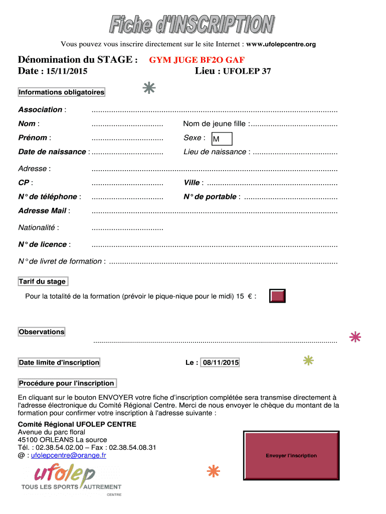 Vows poured vows inscribe divestment SUR LE site Internet : www.ufolepcentre.org D nomination Du STAGE: GYM JUNE BF2O GAF Date: 15/11/2015 Lieu : UFO LEP 37