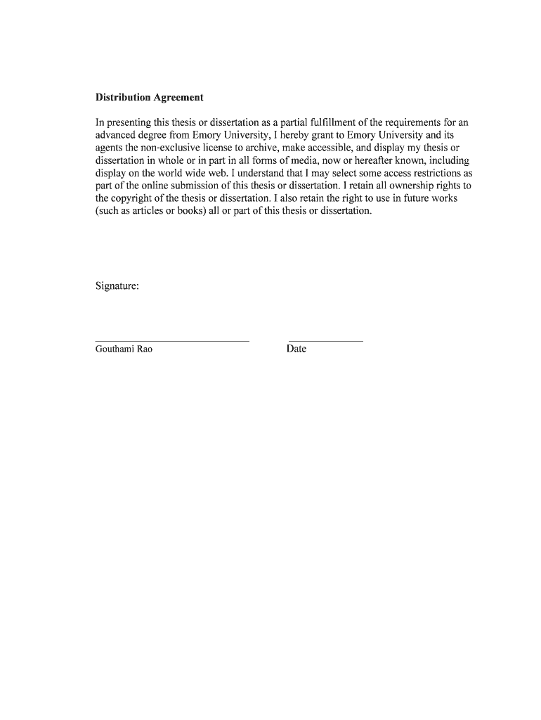 Get the free Distribution Agreement for Thesis