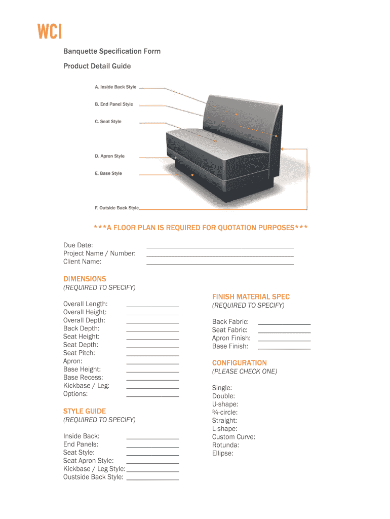 Get the free Banquette Specification Form Product Detail Guide
