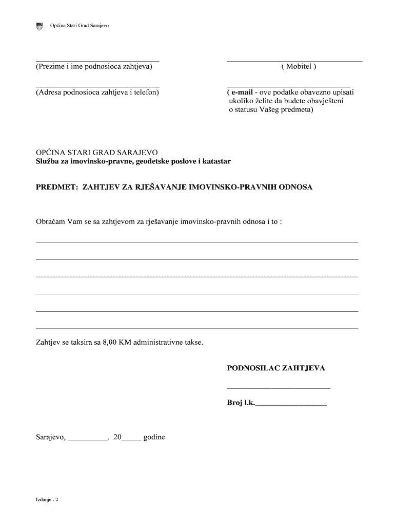 Get the free 2 - OBRAZAC ZA RJESAVANJE IMOVINSKO-PRAVNIH ODNOSA - starigrad