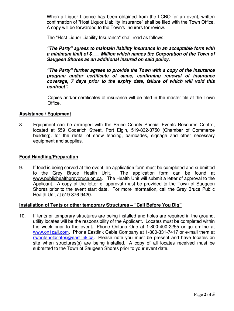 Special conditions for the License may apply. 6. A copy of the ... confirmation of Host Liquor Liability Insurance” shall be filed with the Town Office. A copy will be ...