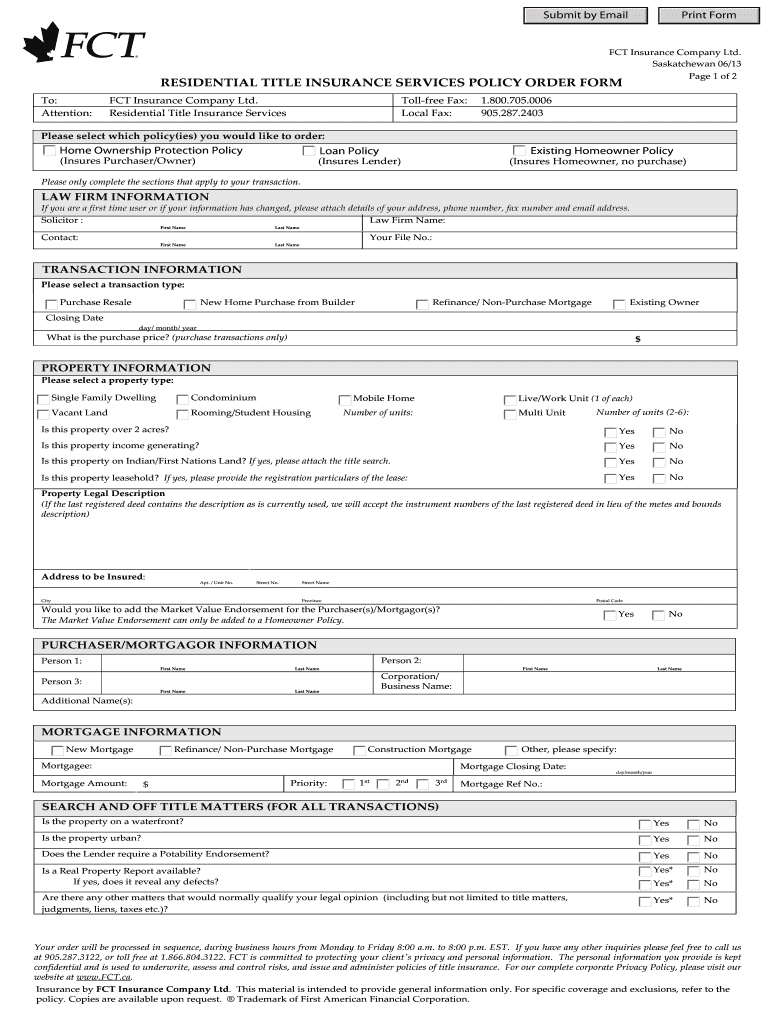 If you have any other inquiries please feel free to call us ... website at www.FCT. Ca. Page 1 of 2. Insurance by ACT Insurance Company Ltd. This material is ...