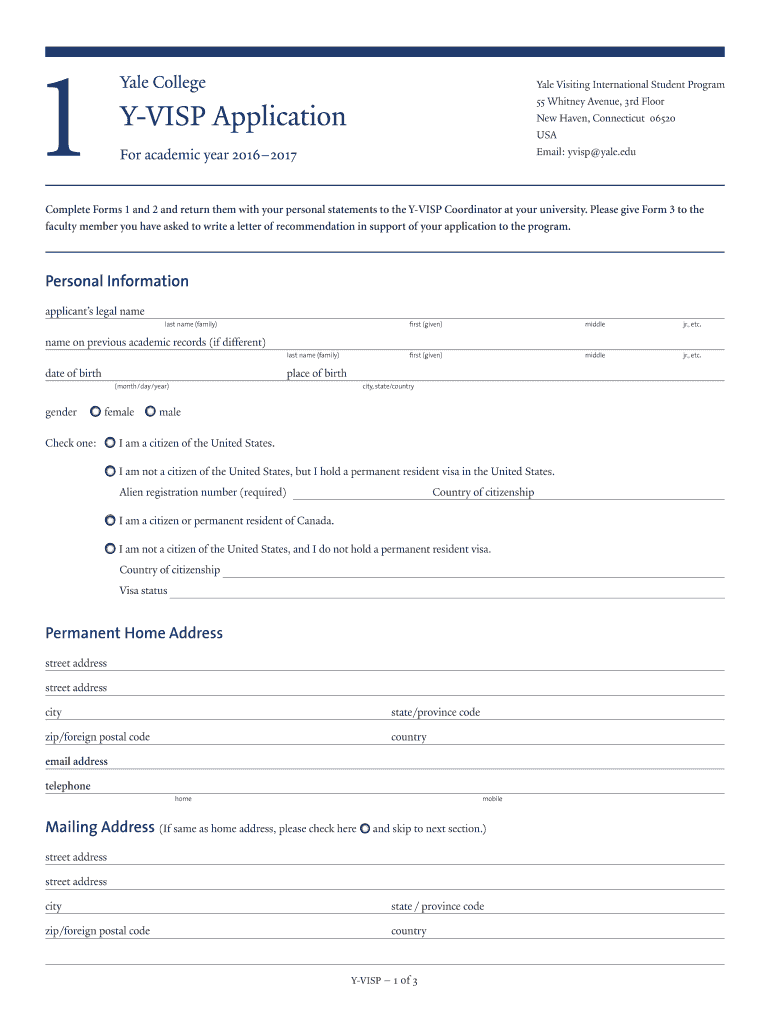 The Y-Visp application requires information such as personal details, travel plans, purpose of visit, financial information, and any previous visits to the United States.