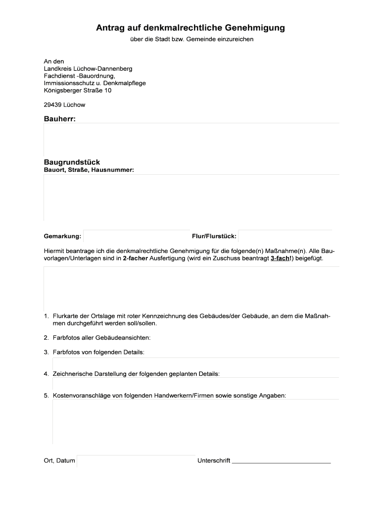 Ant rag AUF denkmalrechtliche Genehmigung BER die Start BMW. Demand einzureichen An den Banduras L chow-Dannenberg Achiest -Bauordnung,