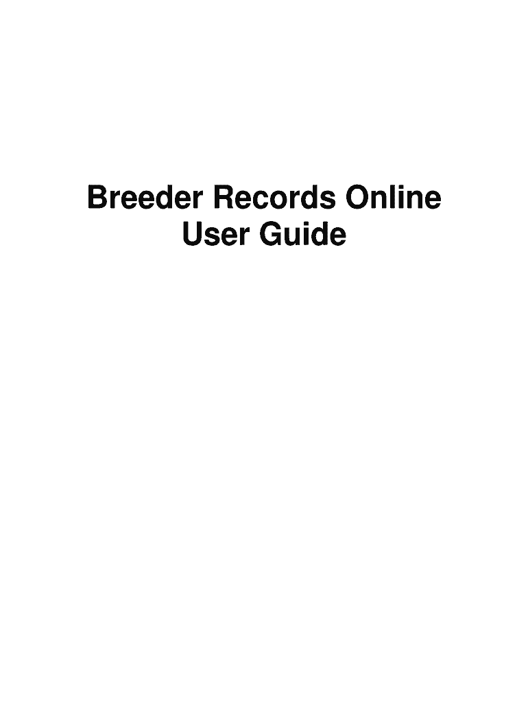 Breeder Records Online User Guide MY RECORDS BREEDER RECORDS...................................3 I. Viewing and Updating Your Breeder Records A. Creating a New Breeder Record I. Entering Mating Record