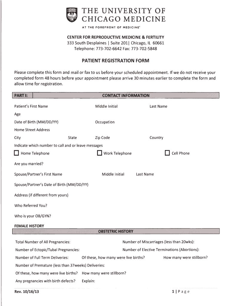 Get the free Patient Registration Form - University of Chicago - chicagofertility uchicago