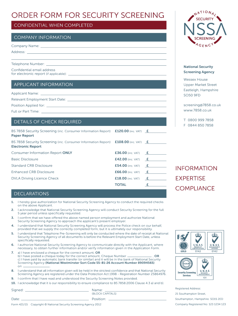 I hereby give authorization for National Security Screening Agency to conduct the ... provided that we supply the correctly completed form, but it is ultimately our ...