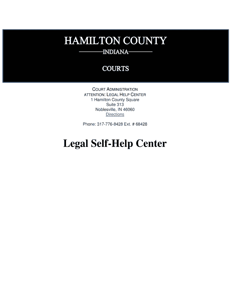 COURT ADMINISTRATION ATTENTION: LEGAL HELP CENTER 1 Hamilton County Square Suite 313 Noblesville, IN 46060 Directions Phone: 3177768428 Ext. # 68428 Legal Selfless Center CONTENTS CHAPTER 1, SECTION