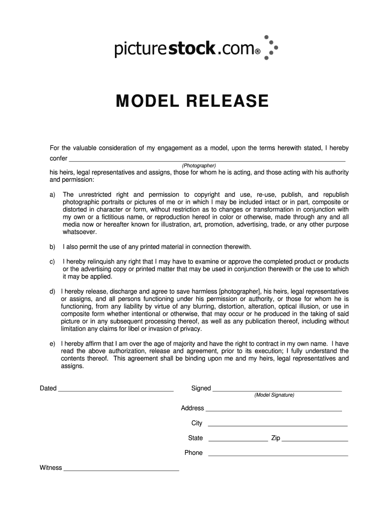 STOCK MODEL RELEASE For the valuable consideration of my engagement as a model, upon the terms herewith stated, I hereby confer (Photographer) his heirs, legal representatives and assigns, those for