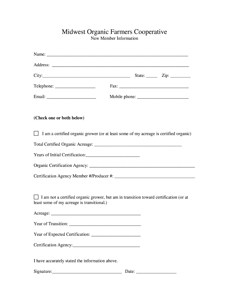 Midwest Organic Farmers Cooperative New Member Information. Name: Address: ...