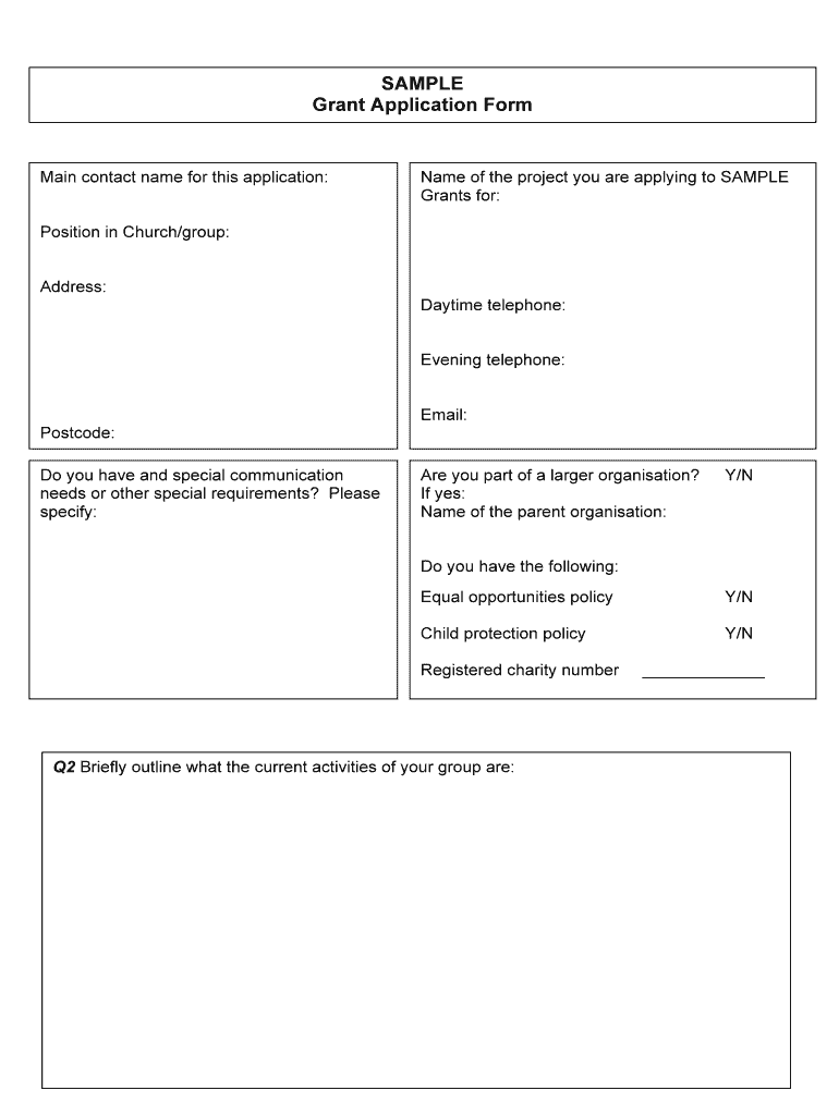 SAMPLE Grant Application Form Main contact name for this application: Name of the project you are applying to SAMPLE Grants for: Position in Church/group: Address: Daytime telephone: Evening telephone: