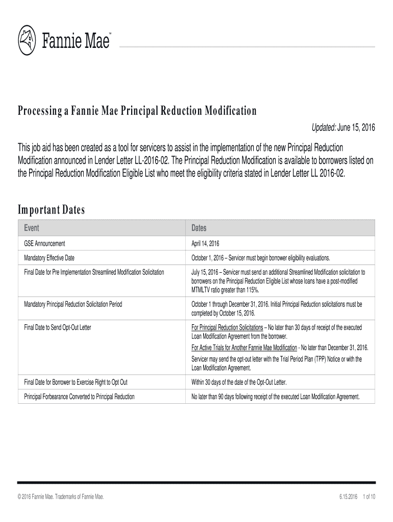 Updated: June 15, 2016This job aid has been created as a tool for services to assist in the implementation of the new Principal Reduction