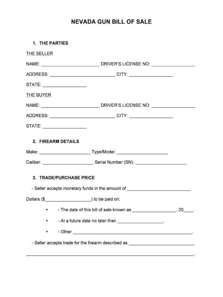The seller and buyer of the firearm are required to fill out the nevada-gun-bill-of-sale.docx.