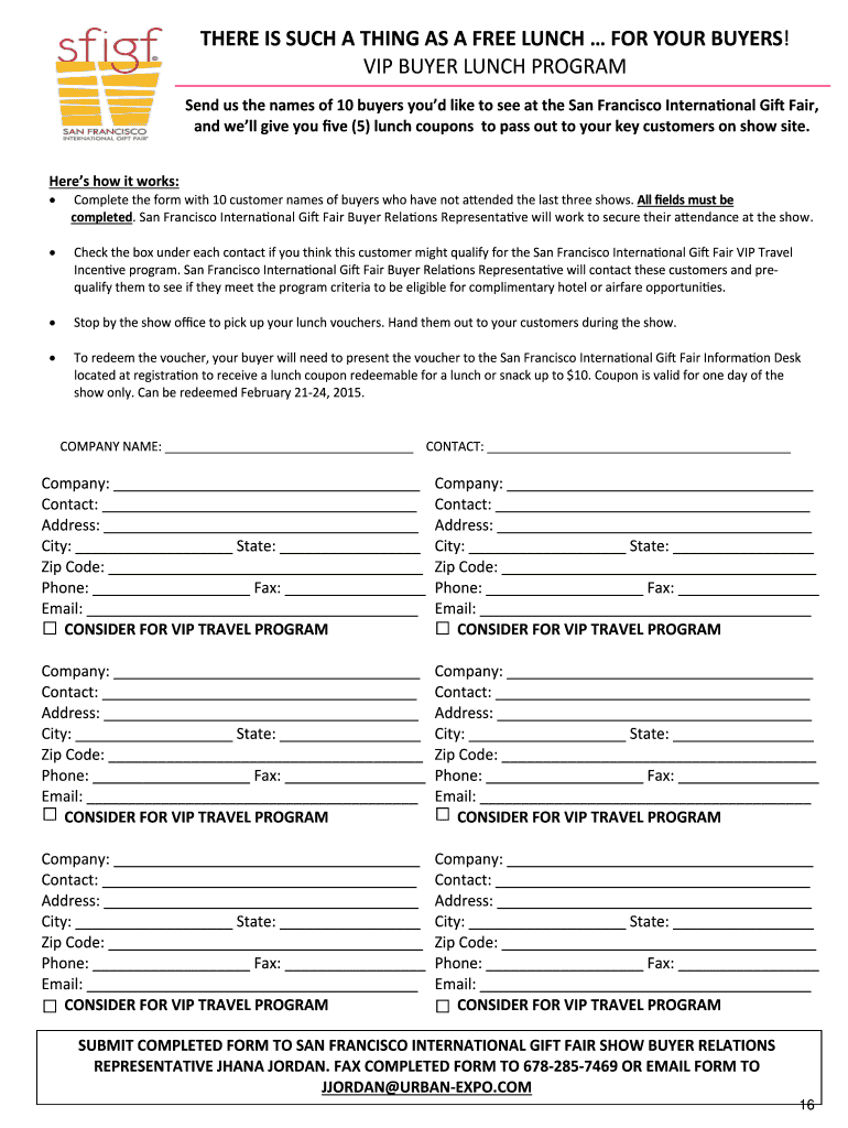Get the free Sfigf 215- BUYER LUNCH PROGRAM - candcshowscom