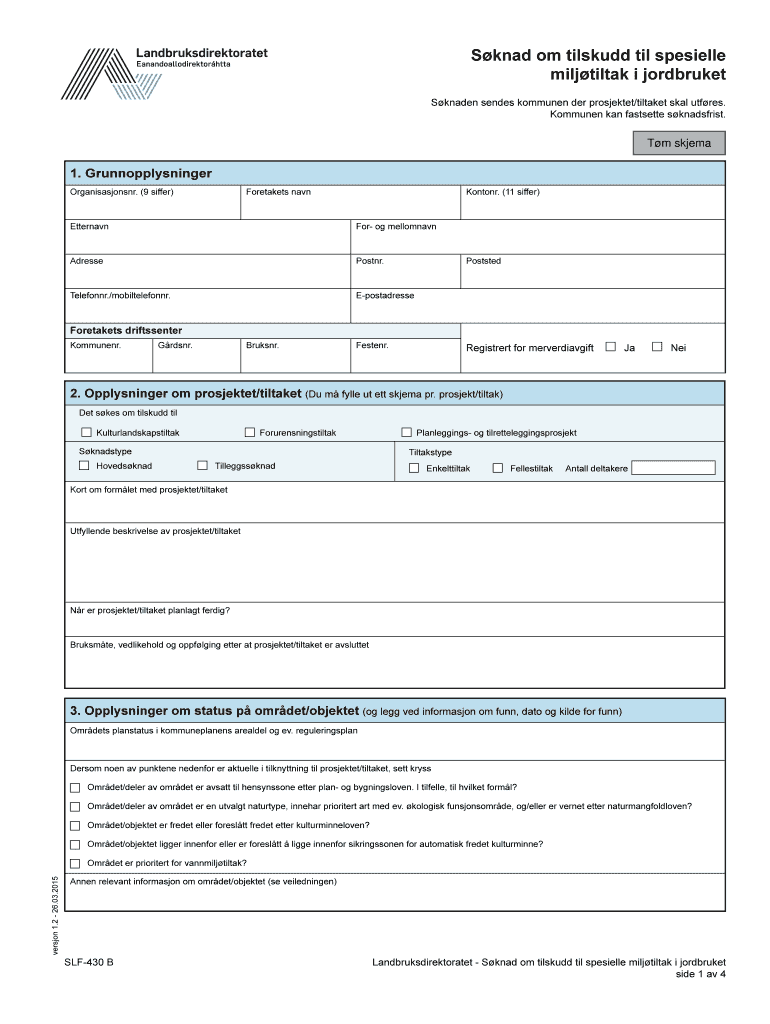 Get the free S knad om tilskudd til spesielle milj tiltak i jordbruket S knaden sendes kommunen d...