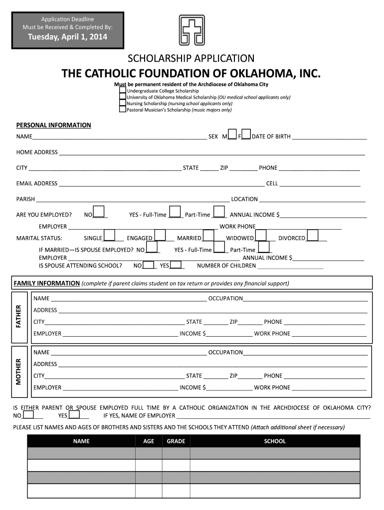 Get the free 2014 Scholarship Application - Catholic Foundation of Oklahoma - cfook
