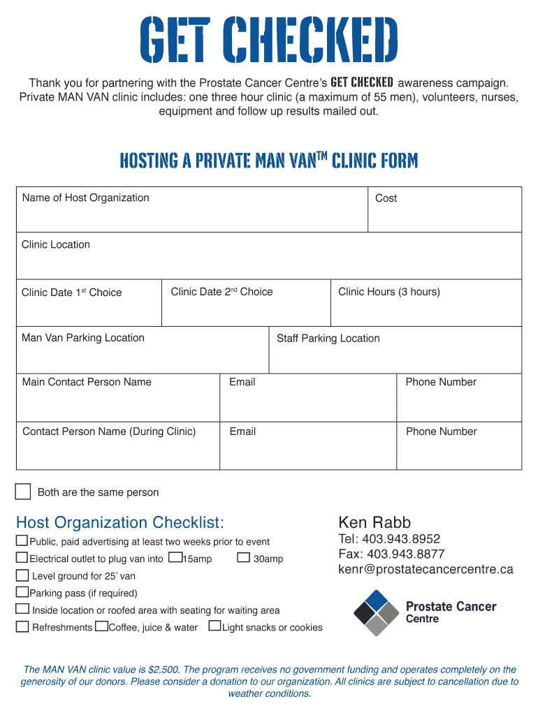 Get the free Private MAN VAN clinic includes: one three hour clinic (a maximum of 55 men), volunt...