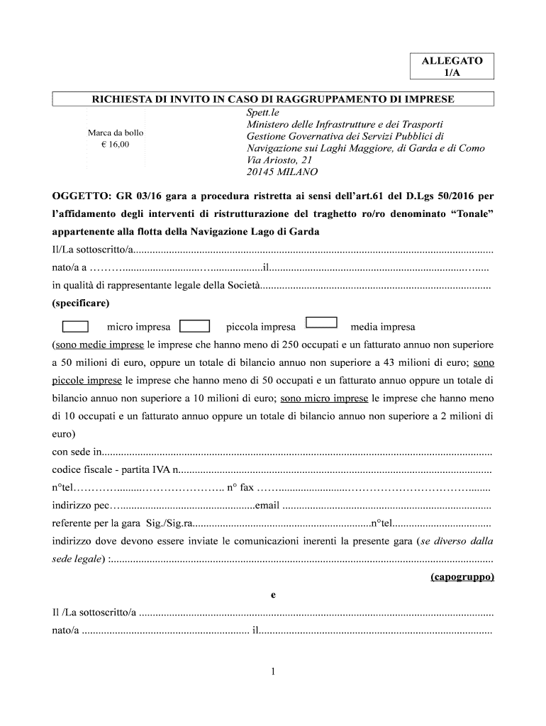 Compila tutti i campi richiesti nel modulo Allegato 1a.