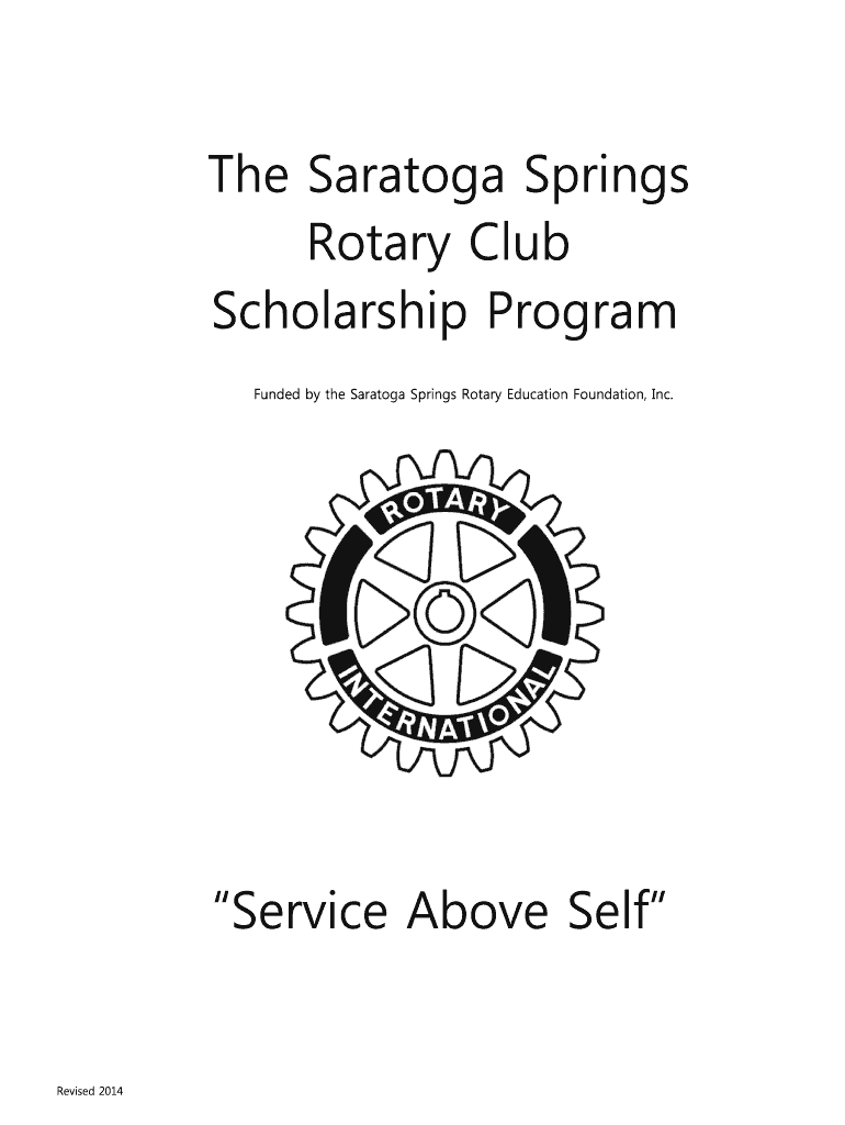The document outlines the scholarship program offered by the Saratoga Springs Rotary Club for high school seniors within the Saratoga Springs City School District. It provides information on eligibility,