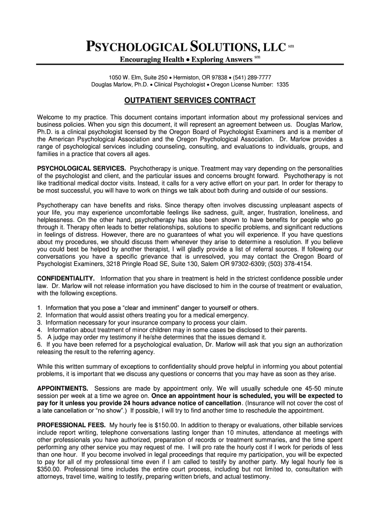 PSYCHOLOGICAL SOLUTIONS, LLC SM Encouraging Health Exploring Answers SM 1050 W. Elm, Suite 250 Hermiston, OR 97838 (541) 2897777 Douglas Marlow, Ph.D. Clinical Psychologist Oregon License Number: