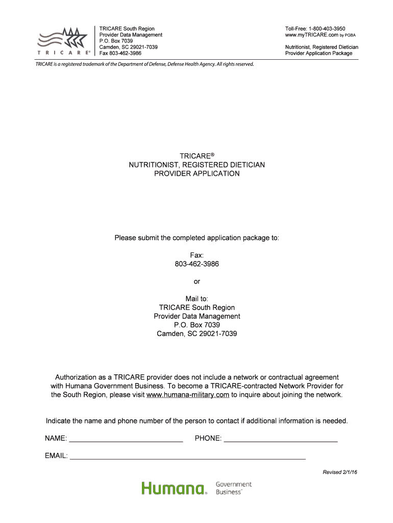 Get the free BTRICAREb South Nutritionist Registered Dietician Provider bApplicationb