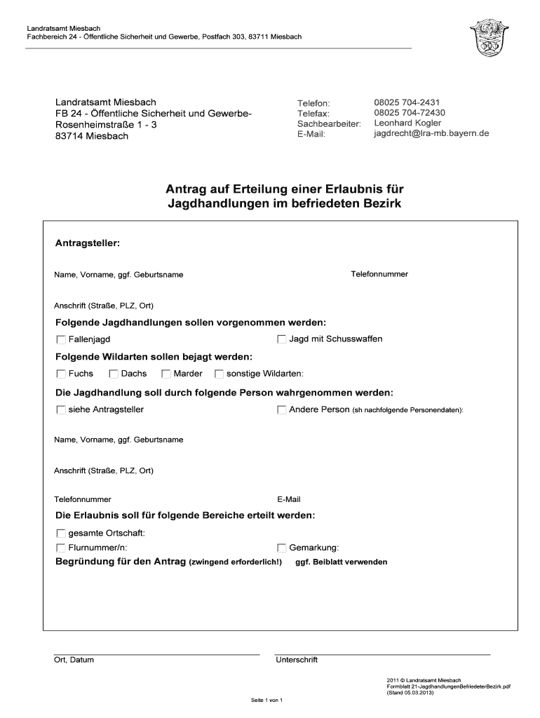 Holen Sie sich kostenlos Antrag auf Erteilung einer Erlaubnis fr Jagdhandlungen im - landkreis-mi...