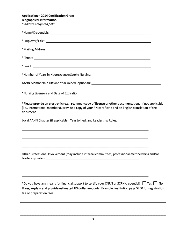 Application Guidelines: ANN Certification Grant Information These guidelines, prepared by the Agnes Marshall Walker Foundation (AMF), are offered to elaborate on the required documentation for the