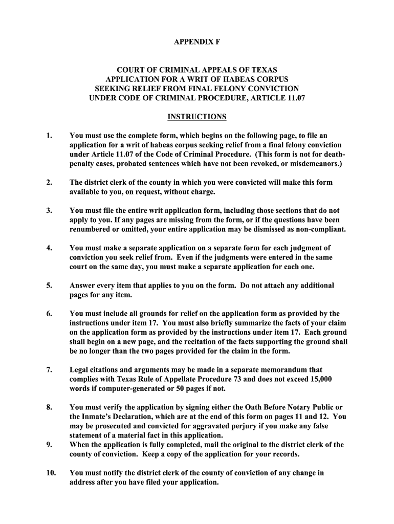 Get the free APPLICATION FOR A WRIT OF HABEAS CORPUS - co bell tx