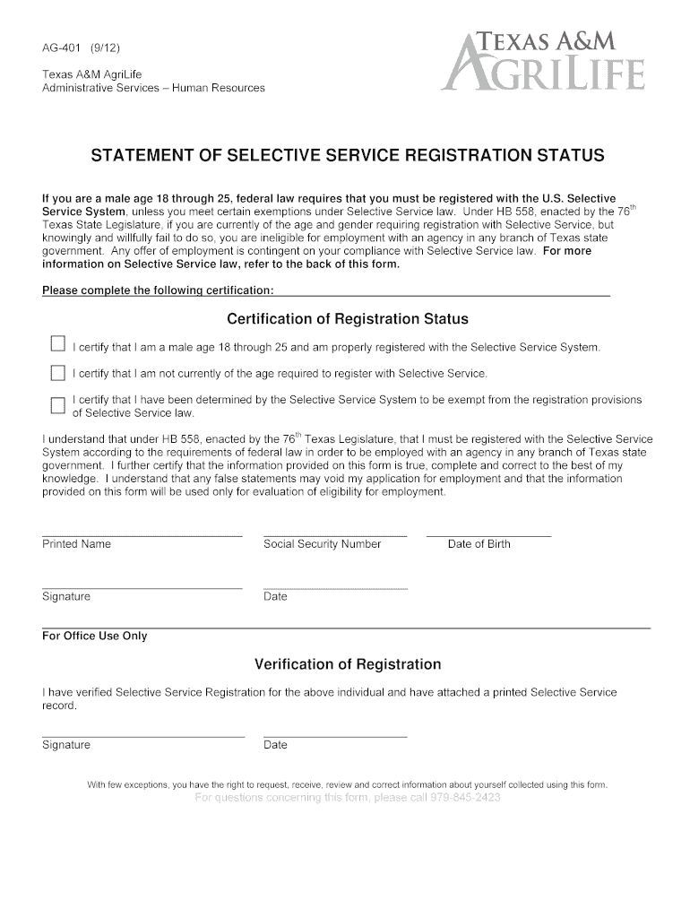 Purpose and Benefits of the Texas Selective Service Registration Status Form