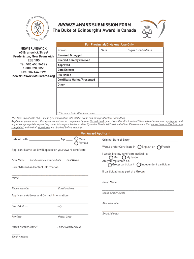 Get the free BRONZE bAWARDb SUBMISSION bFORMb The Duke of Edinburgh39s bb