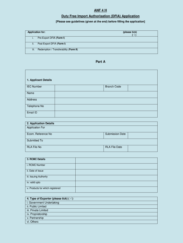 The Duty Free Import Authorisation Application is a business form used by exporters in India to apply for duty-free import of goods required for export.