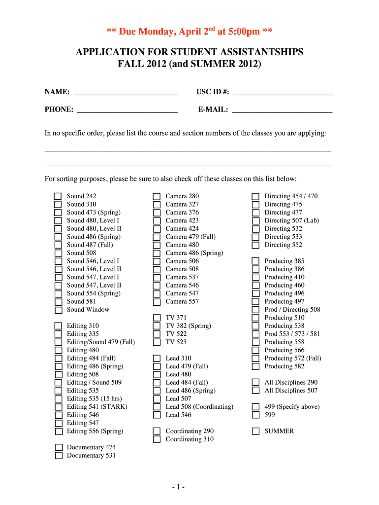 SA for one of these higher level classes, please fill out this form. Stage One Position .... June 25 – August 3 -- M/W 9:00am — 1:00pm. 310/508, Prefer 547.