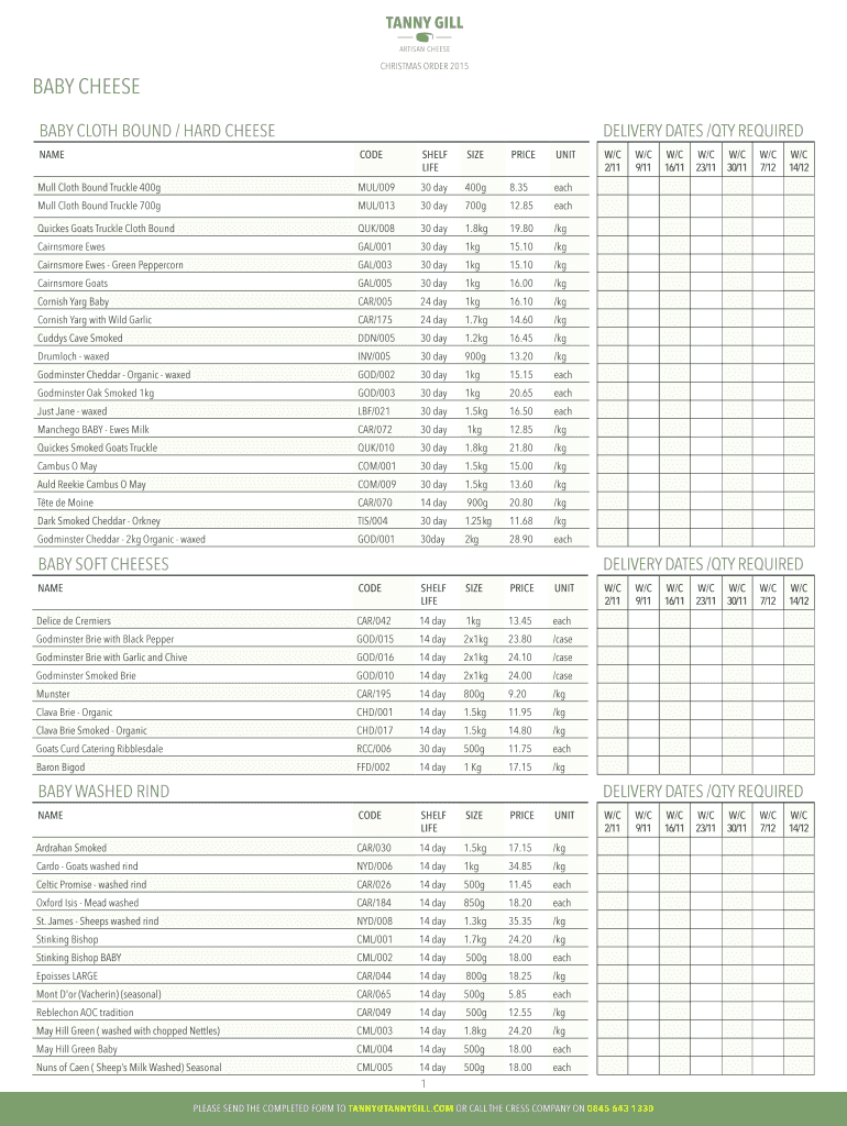 15 Oct 2015 ... This form includes fillable fields, and you can save it on your device. Christmas ... Phone 0845 643 1330 speak to a member of staff or Simone / ...... 21 day. 250g. 4.00 each. Delivery