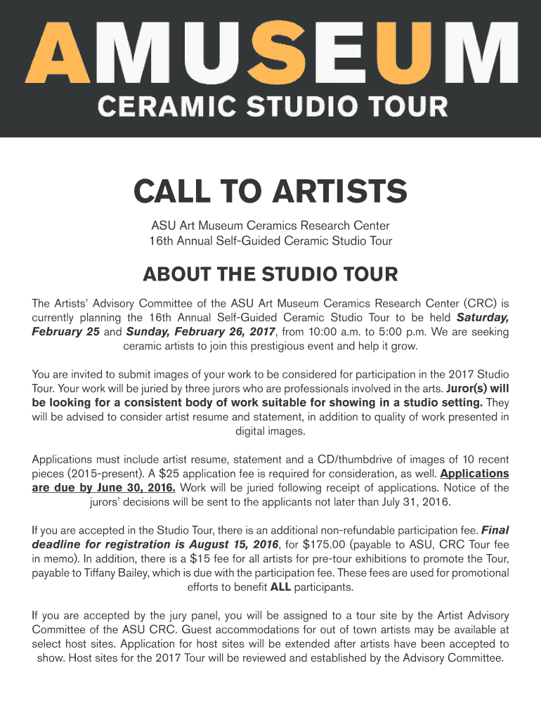 CALL TO ARTISTS ASU Art Museum Ceramics Research Center 16th Annual Selfhoods Ceramic Studio Tour ABOUT THE STUDIO TOUR The Artists Advisory Committee of the ASU Art Museum Ceramics Research Center