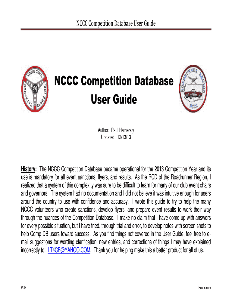 Get the free NCCC Competition Database User Guide - bmichcorvettebborgb
