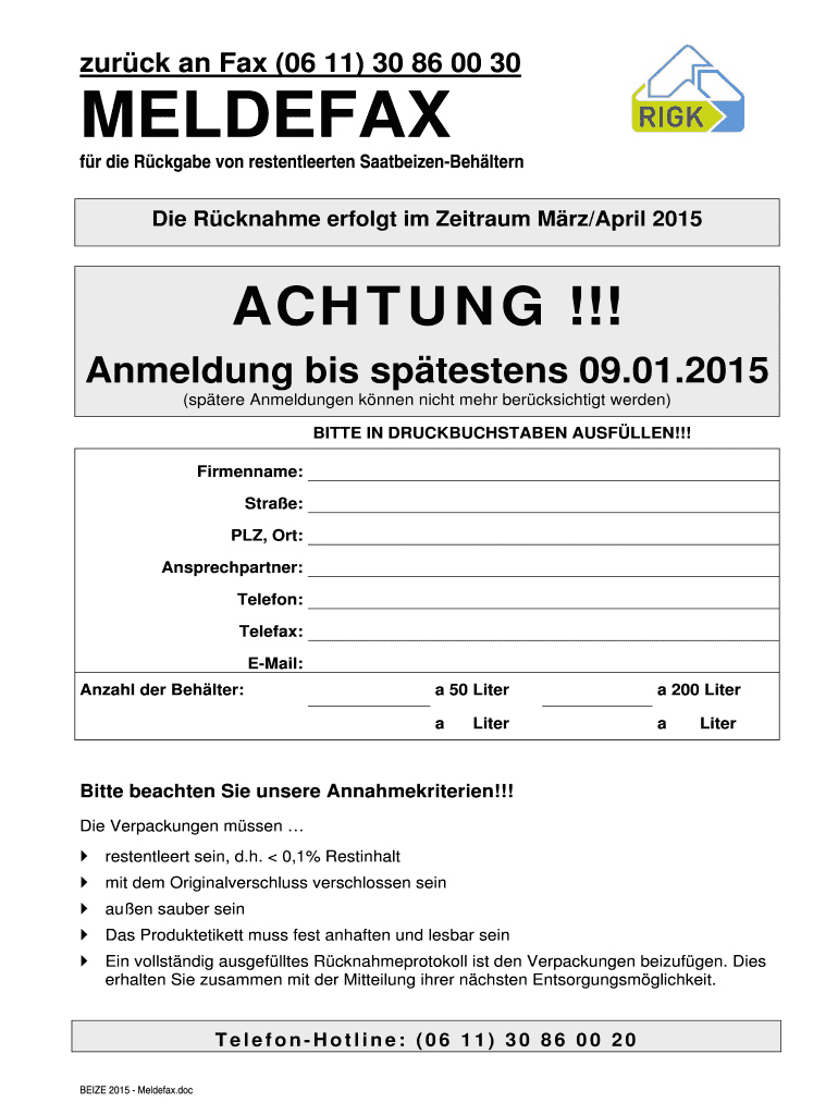 Our ck a Fax (06 11) 30 86 00 30 TELEFAX f r die R Mugabe on restentleerten Saatbeizen-Beh stern SEIZE 2015 — Meldefax.doc Die R CNAME effort I'm Latham ...