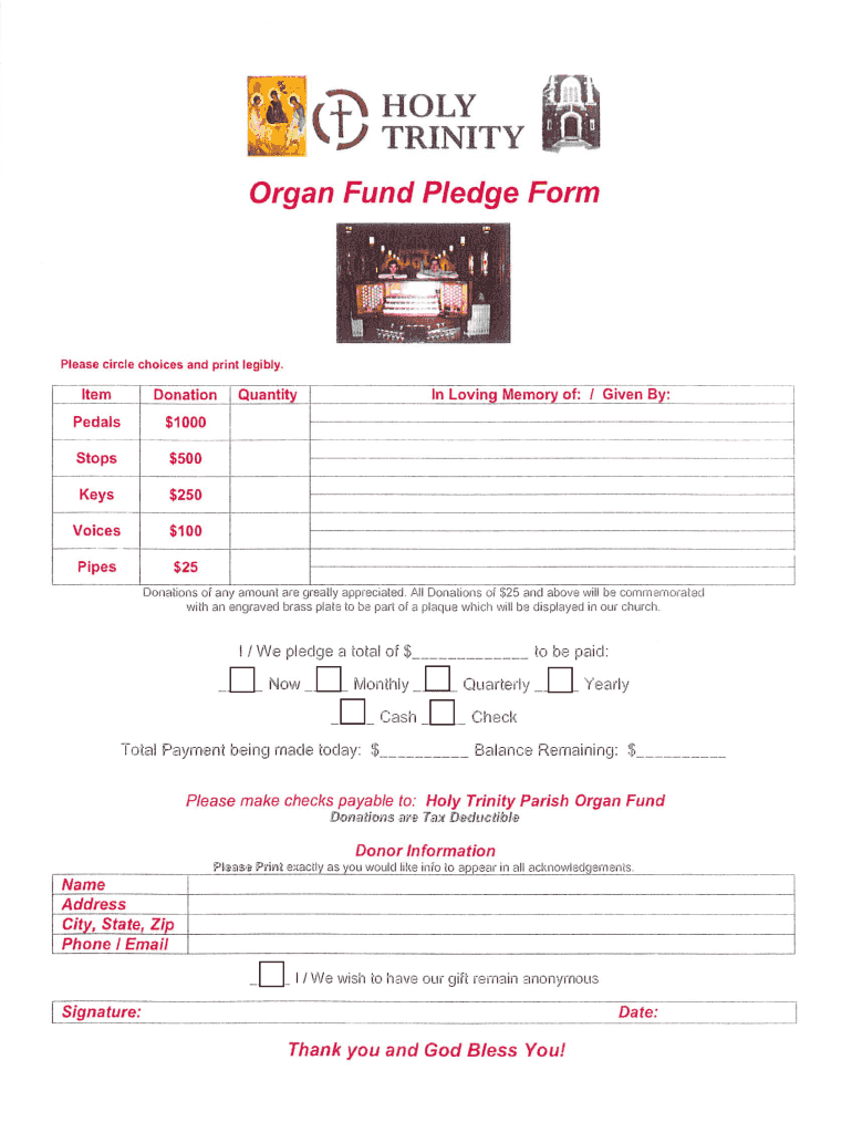 Organ Fund Pledge Form is not the form you're looking for?Search for another form here.