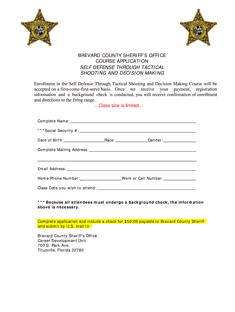 Get the free BREVARD COUNTY SHERIFF39S OFFICE COURSE bAPPLICATIONb bb
