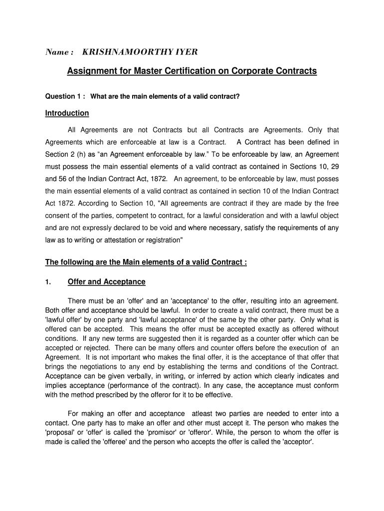 The purpose of Name Krishnamoorthy Iyer could be for identification, legal documentation, or other administrative purposes.