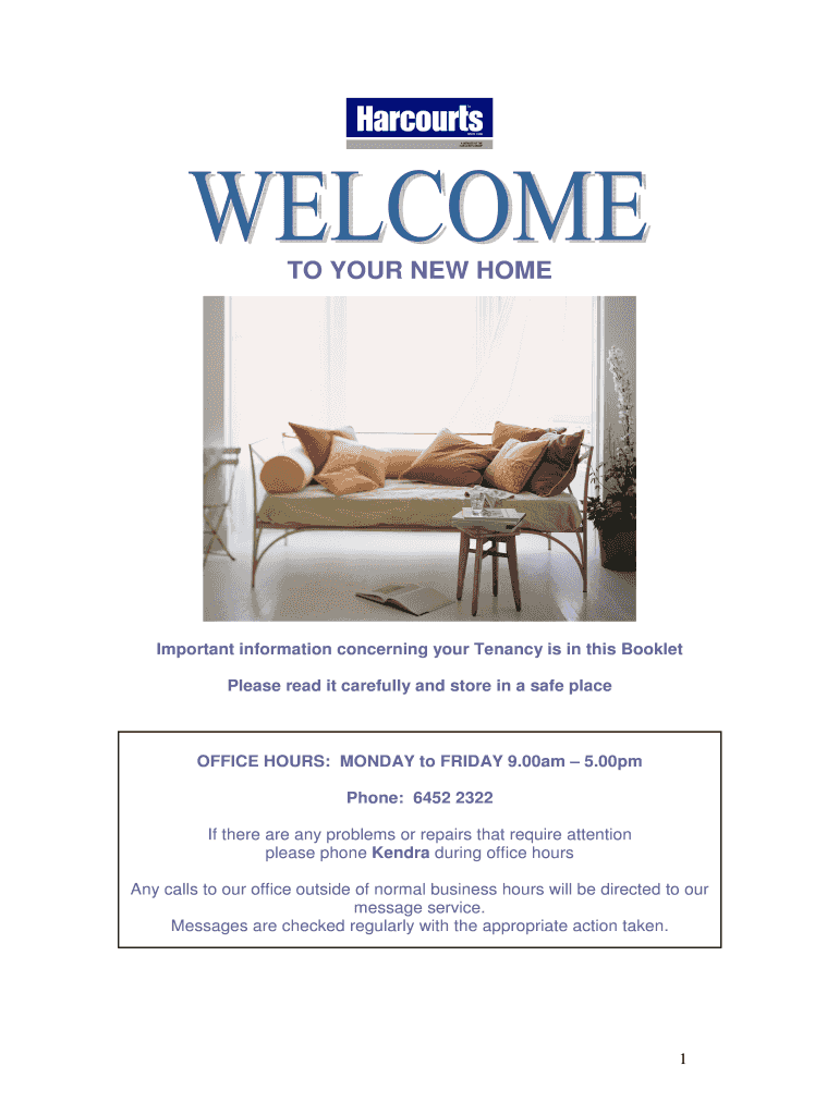 TO YOUR NEW HOME Important information concerning your Tenancy is in this Booklet Please read it carefully and store in a safe place OFFICE HOURS: MONDAY to FRIDAY 9.00am 5.00pm Phone: 6452 2322 If