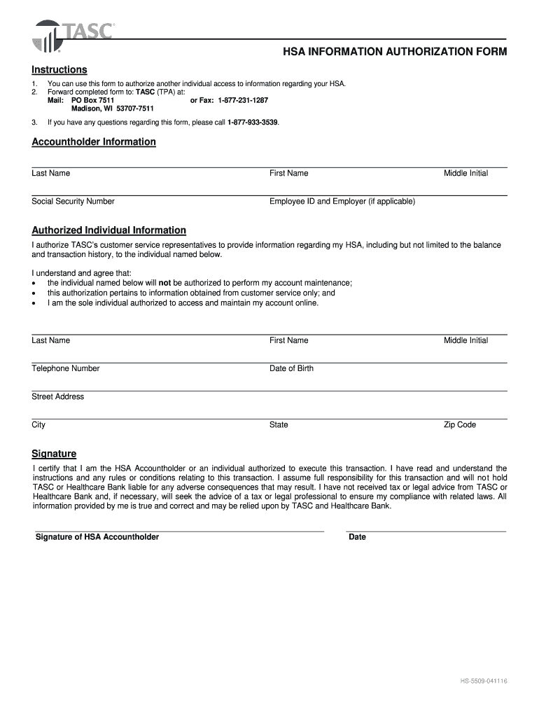 Get the free HSA bInformation Authorizationb - TASC