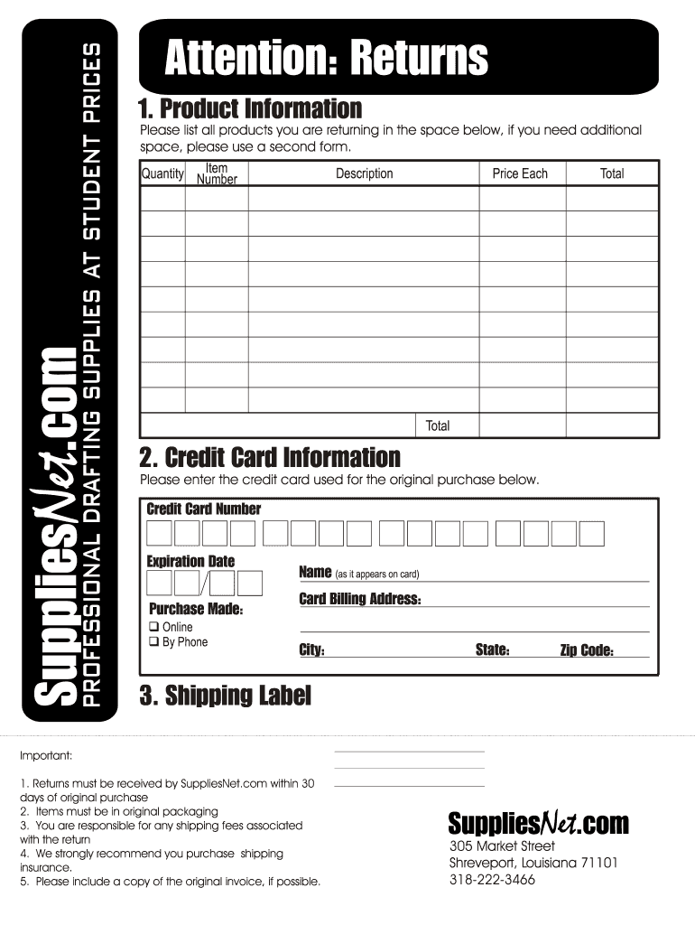 Supplies drafting supplies at student prices Net.com professional Attention: Returns 1. Product Information Please list all products you are returning to the space below, if you need additional space,
