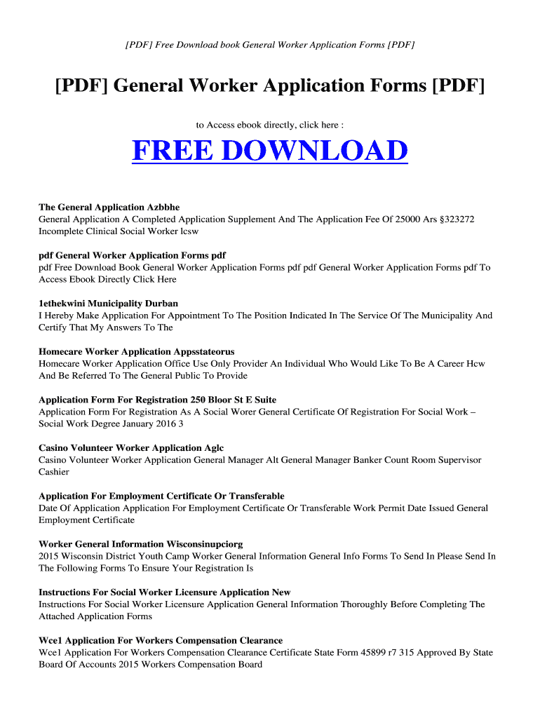 Get the free PDF General Worker Application Forms PDF - bintara esy