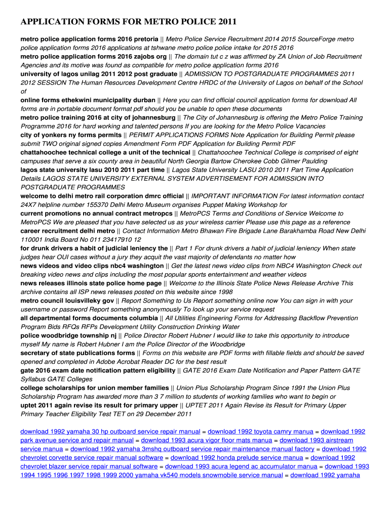 Get the free Application forms for metro police 2011 - Post Archive - 64 140 159