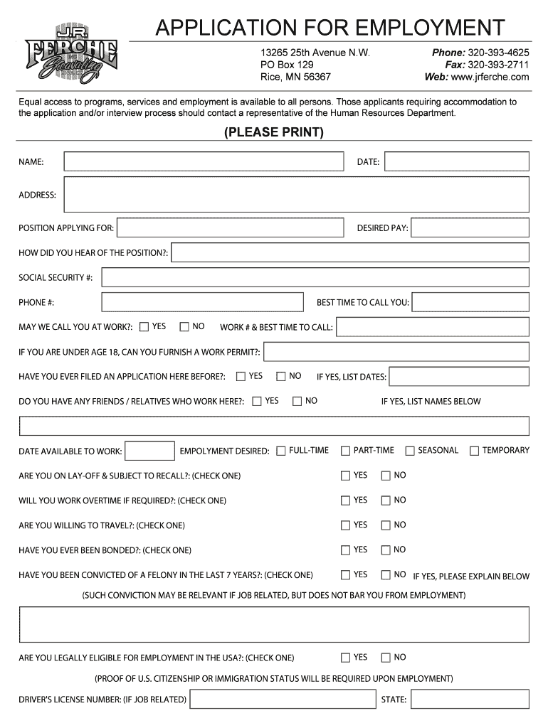 Get the free employment application - bfillableb printable - jr ferche inc